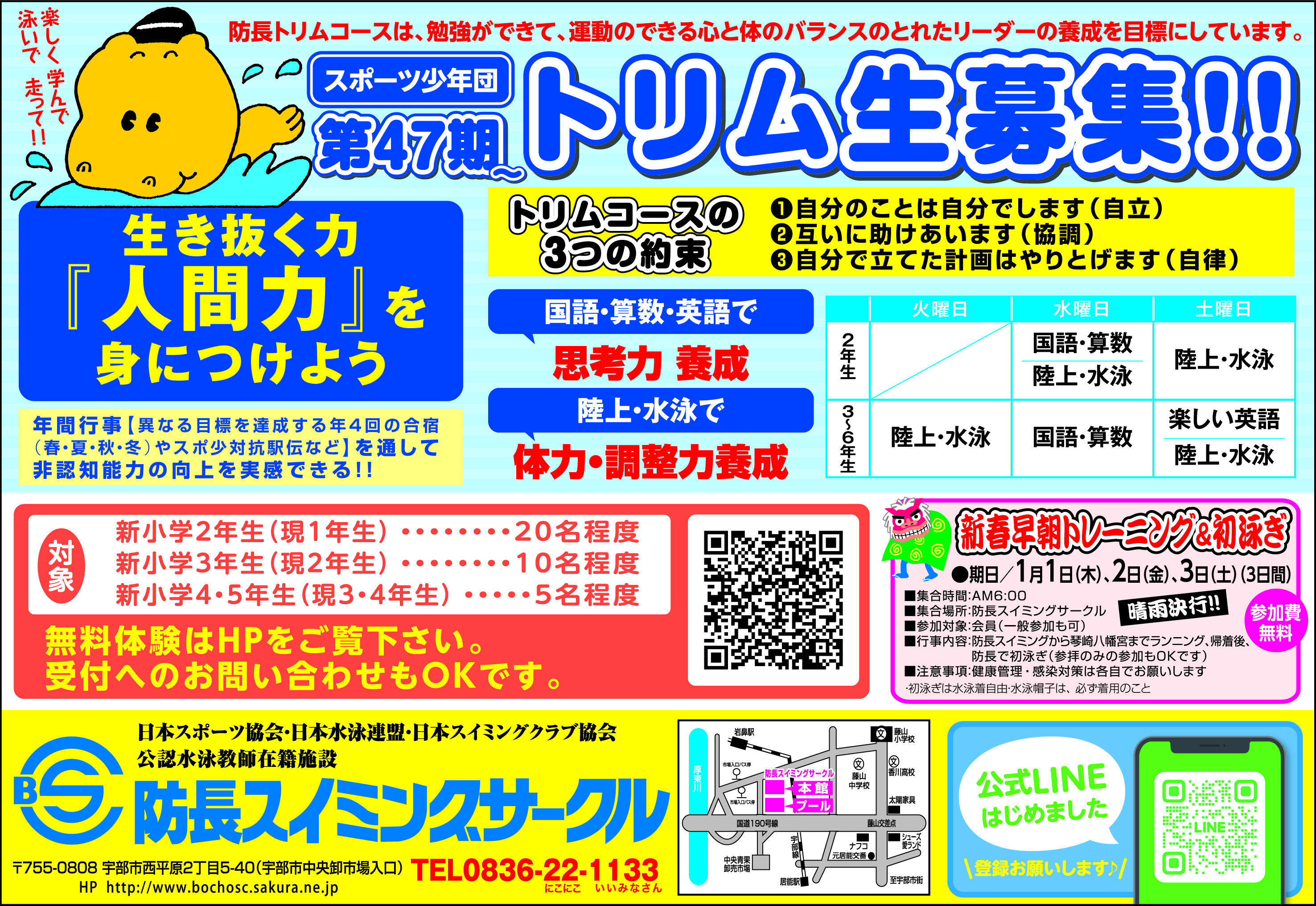 防長くんと泳ごう コース案内 スポーツ少年団 防長の学習塾 会社沿革 個人情報保護方針 Web予約